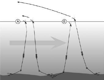 Рис. 52. Леска при проводке не должна касаться поверхности воды